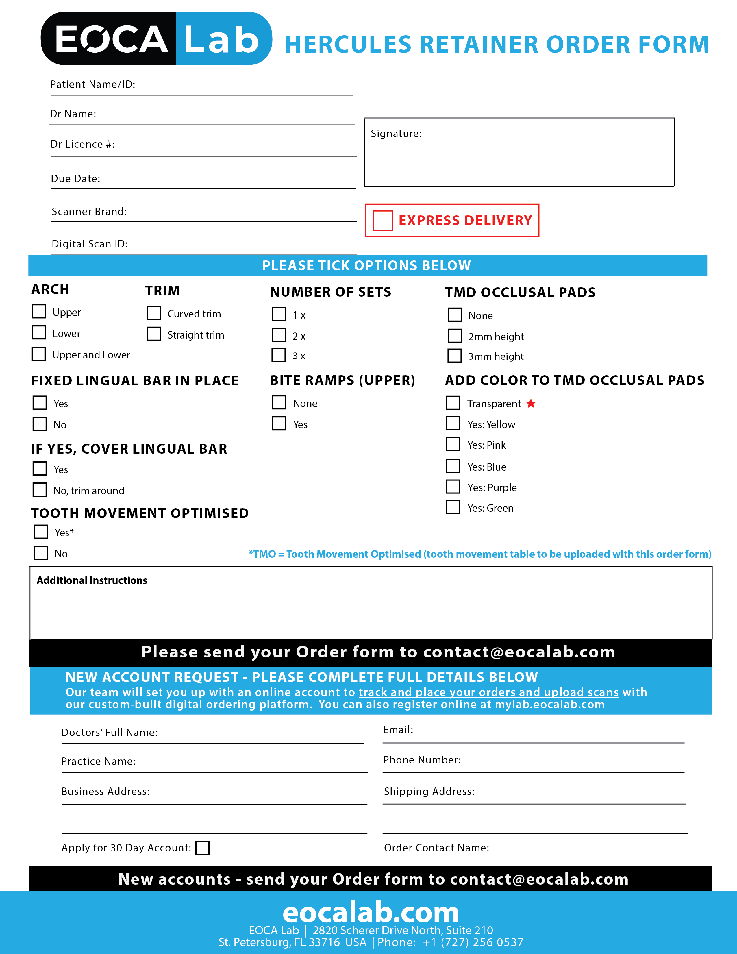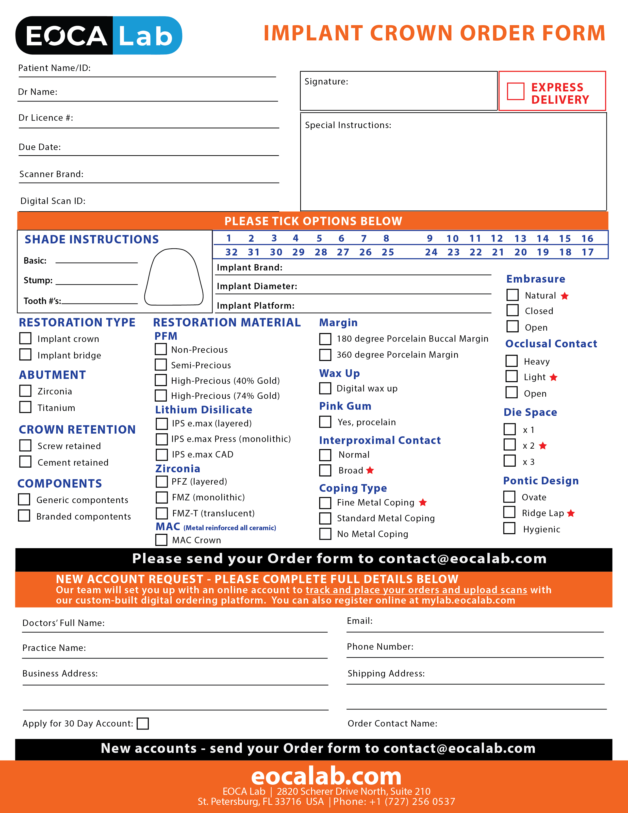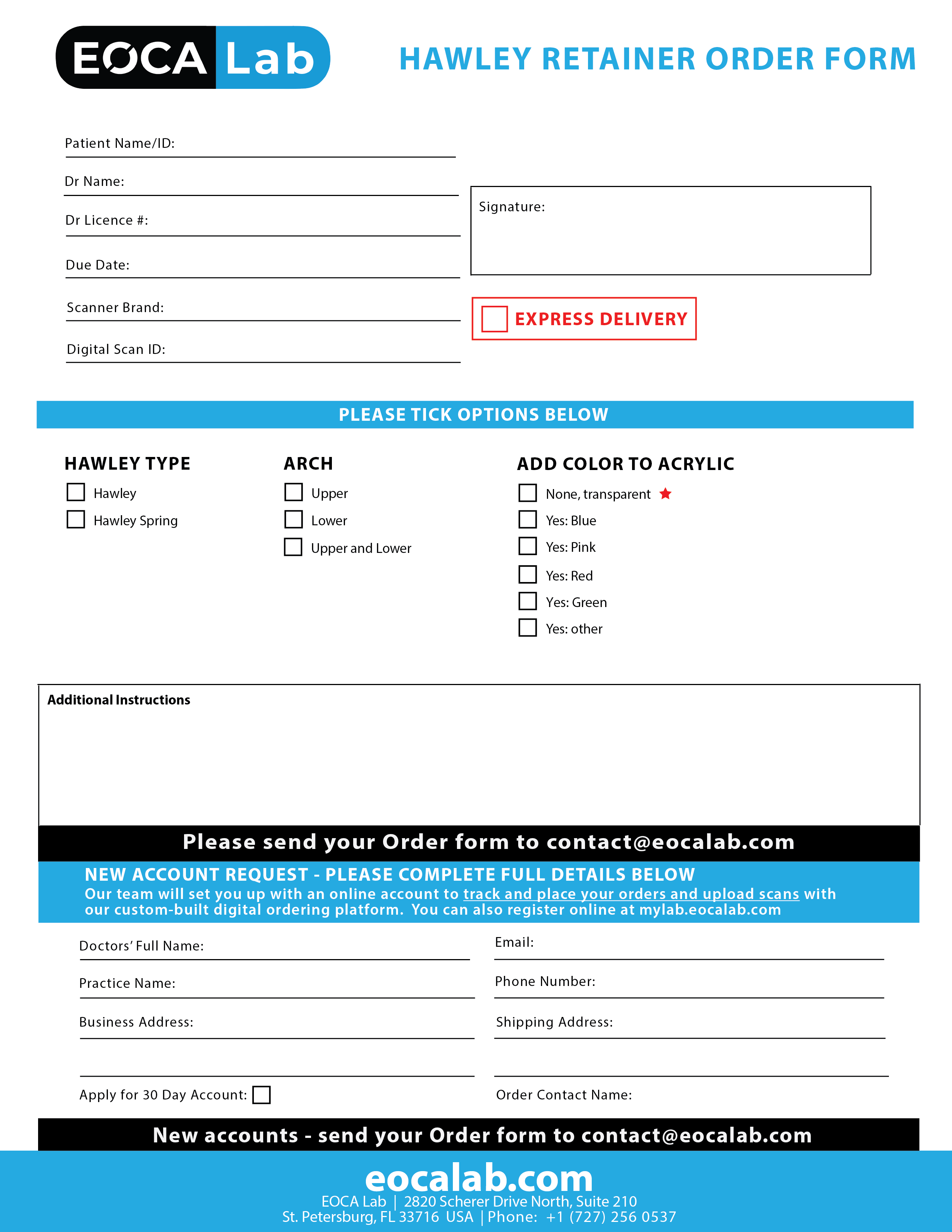 If you choose to use the paper forms, we will create an EOCA Lab account for you and convert this order form to be fully trackable from order submission to fulfilment to shipping to you.