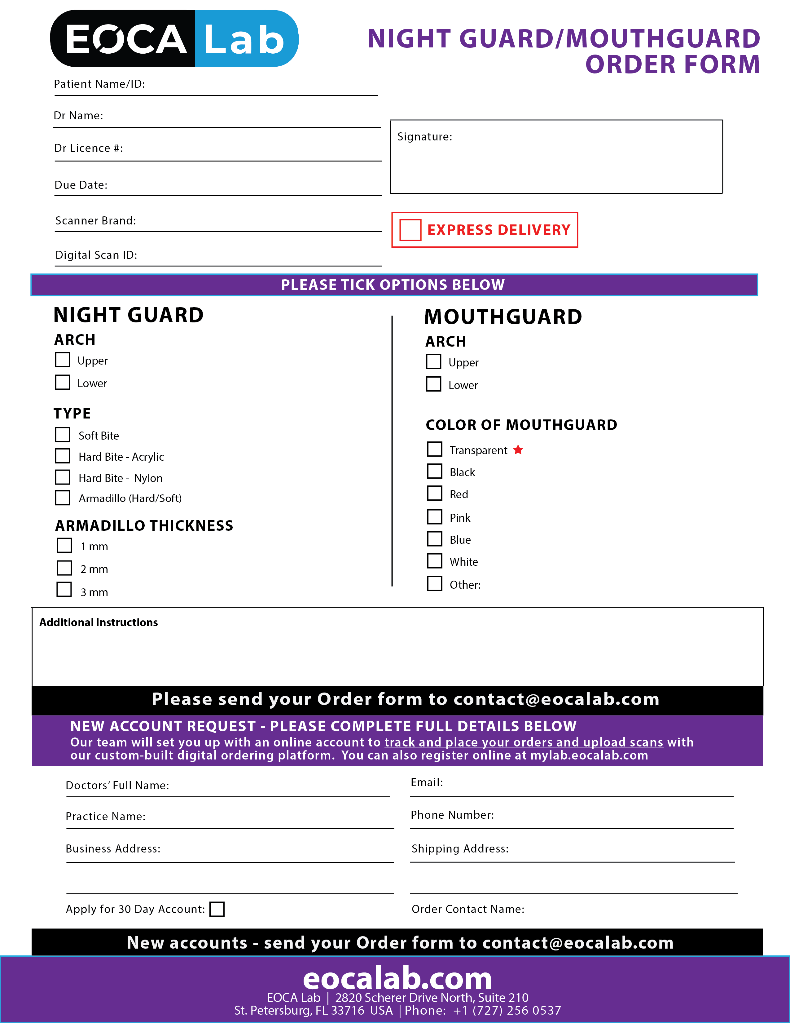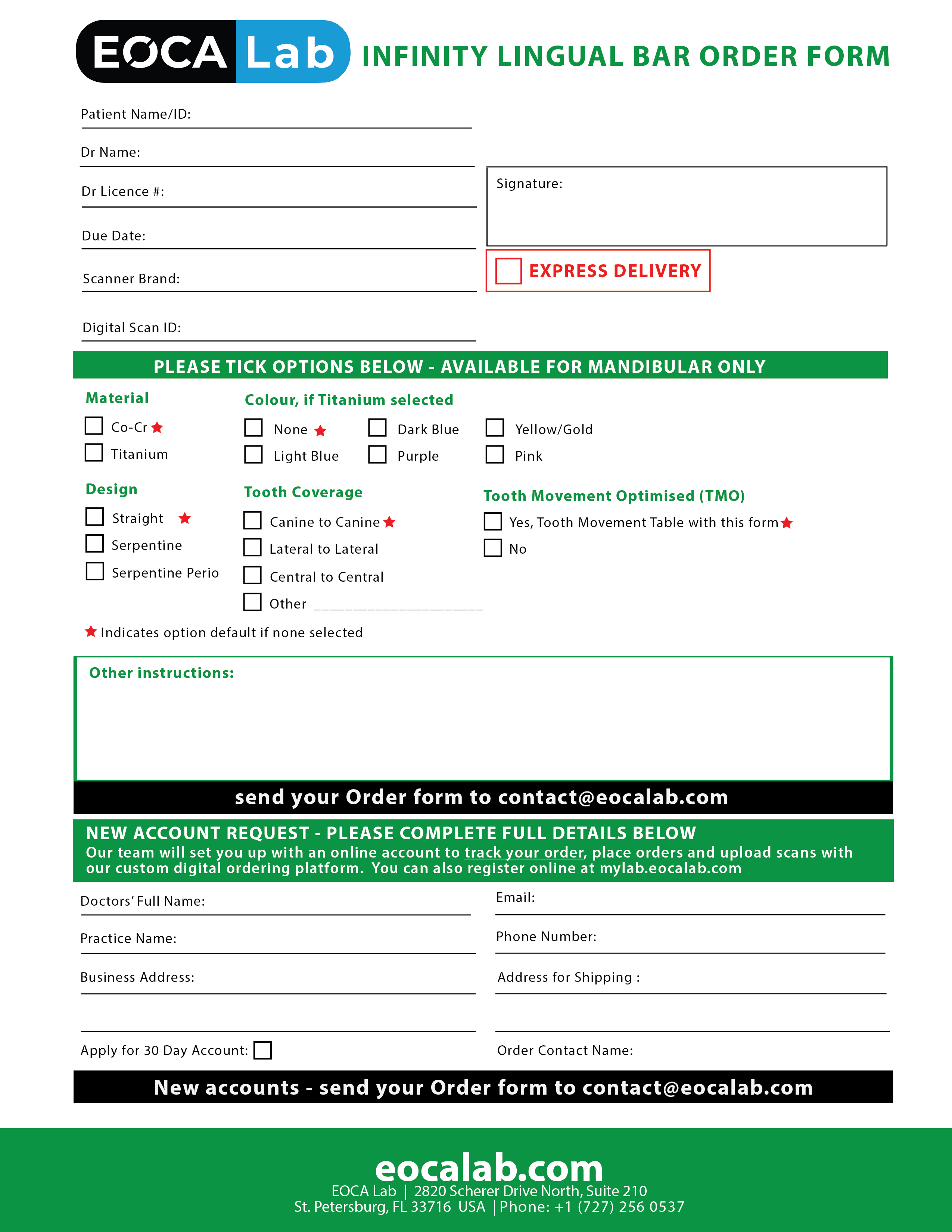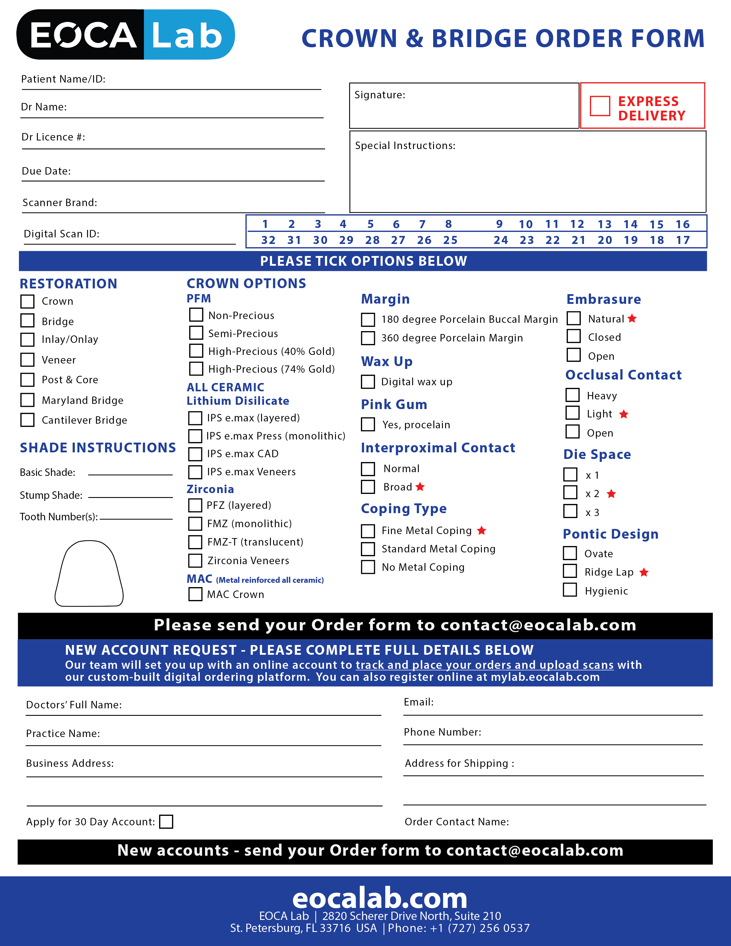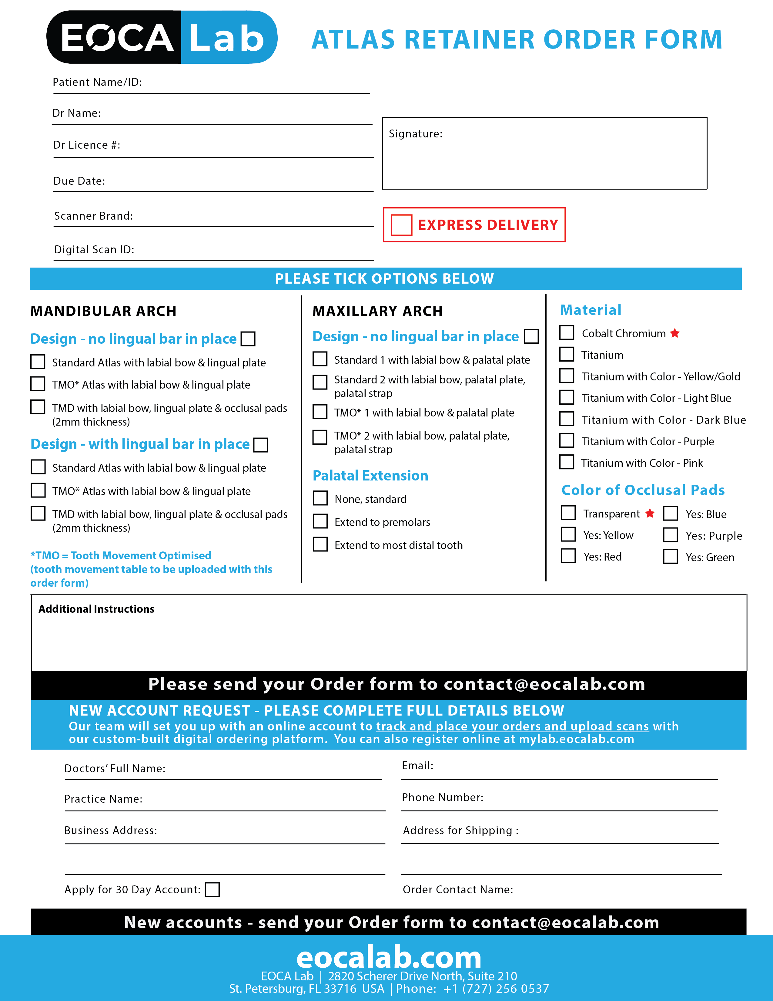 If you choose to use the paper forms, we will create an EOCA Lab account for you and convert this order form to be fully trackable from order submission to fulfilment to shipping to you.